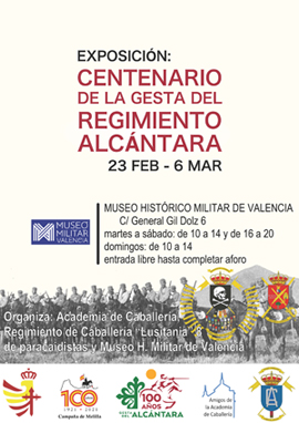 Se trata de una exposición itinerante que, tras pasar por Valladolid, Cáceres, Melilla, Zaragoza, Ronda y Ceuta, llega a Valencia para homenajear a los jinetes del Alcántara, dando a conocer su gesta cuando se cumplen 100 años de la Campaña de Melilla.