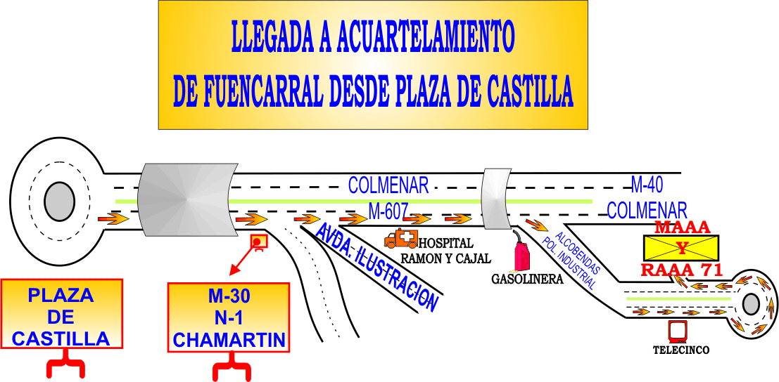 Acceso por Metro: La estación de Metro más cercana es la de Las Tablas (líneas 1 y 10), situada a unos 15/20 minutos andando del Acuartelamiento. Las estaciones de Chamartín, Begoña y Ronda de la Comunicación están conectadas con el Acuartelamiento por el autobús interurbano 154.