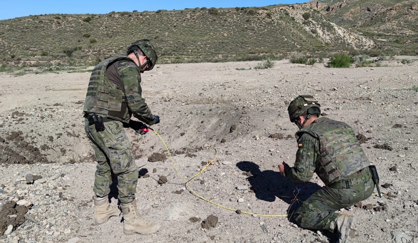 Cumpliendo con el calendario de destrucción de municiones marcado en el Programa de Actividades Logísticas de la Dirección de Integración de Funciones Logísticas del Mando de Apoyo Logístico, tuvo lugar el pasado día 25 de abril en el campo de maniobras y tiro “Álvarez de Sotomayor” de Viator (Almería), varias voladuras controladas para la destrucción de material de clase V.