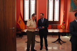 La Delegada Provincial de Igualdad, Salud y Políticas Sociales María Ángeles Fernández Ferreiro junto con el Director Provincial de la Empresa Pública de Emergencias Sanitarias (EPES-061) Francisco Bonilla Quintero entrega un diploma acreditativo por la distinción de “Zona cardiasegurada” al Cuartel General de la Fuerza Terrestre.