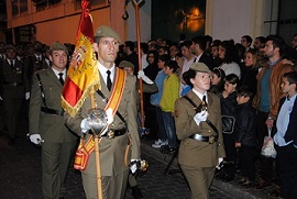 El Martes Santo, la Escuadra de Batidores y una nutrida comisión de Oficiales, Suboficiales y Artilleros del Regimiento se desplazaron a Jerez de la Frontera para acompañar al Teniente General Jefe de la Fuerza Terrestre en su Ofrenda anual al Cristo de la Defensión, titular de la Hermandad Castrense de dicha ciudad.