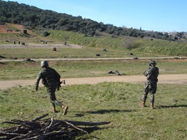 Después de realizar varios ejercicios de tiro en la Fase de Formación General y en la Fase de Formación Específica, con los que ha podido familiarizarse con el arma, su funcionamiento y características, el Alumno, ya como Soldado, realiza su primer ejercicio de tiro en movimiento, pero no solo eso, sino que además lo realiza junto a su binomio.