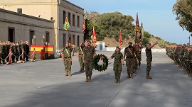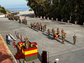 En su alocución, el coronel dirigió unas palabras a los presentes agradeciendo el apoyo recibido por instituciones militares y civiles, y, especialmente, por el personal del CECOM Ceuta, del núcleo de la USBAD en el acuartelamiento y del propio personal de RAMIX 30 que han hecho posible el traslado a este emblemático acuartelamiento, cuna de la artillería en Ceuta y testigo de sus gestas. A continuación, tuvo lugar el acto en honor a los que dieron su vida por España. Los guiones, banderines y portacoronas del Regimiento se dirigieron a paso lento hacia el monolito de homenaje a los caídos mientras se interpretaba de fondo la canción “La muerte no es el final”. Tras ser depositada la corona por el Comandante General y el Jefe del Regimiento, una sección realizó una descarga de fusilería.