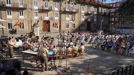 La Unidad de Música del Cuartel General del Mando de Apoyo a la Maniobra (MAM), ofreció un concierto de música en la coruñesa Plaza de la Constitución, frente a la fachada del Palacio de Capitanía General.