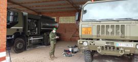 En este apoyo, se realizaron inspecciones de prórroga de los vehículos destinados al transporte de mercancías peligrosas por carretera (ADR). Para ello las agrupaciones de apoyo logístico de la BRILOG disponen de personal cualificado, instruido y dirigido por los oficiales del Cuerpo de Ingenieros Politécnicos de sus respectivas Unidades de Ingeniería.