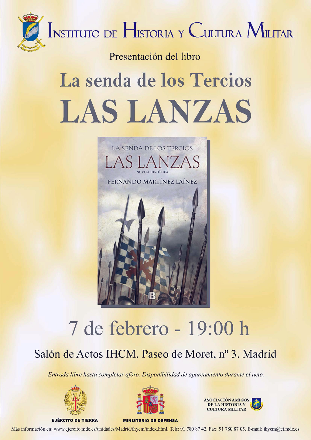 El Instituto de Historia y Cultura Militar, presenta la novela histórica de Fernando Martinez Laínez “La senda de los tercios. Las lanzas”, donde se narra el primer tercio de la guerra de Flandes, centrándose en dos personajes, un soldado Alonso de Malengro y el general Ambrosio Spinola.