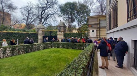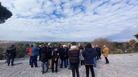 Durante 4 horas, 45 de los alumnos del 4º curso de patrimonio militar realizaron un itinerario interpretativo de unos 5 kilómetros que transcurre por la plaza de España, el templo de Debod, el palacio de Liria, El paseo de Pintor Rosales, la Calle Altamirano, la casa de las flores, para finalizar en el mirador de la Junta Municipal de Moncloa. Los responsables de la ponencia “diseño y ejecución de recorridos históricos”, el geógrafo patrimonialista Juan José Garcia Garcia y el coronel de Infantería DEM D. Jose Romero Serrano ampliaron sobre el terreno los contenidos incluidos en los cuadernillos entregados a los alumnos del curso.