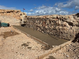 Junto a otras actuaciones de carácter menor, se va a llevar a cabo el recrecimiento del sector norte del espaldón mediante la instalación de gaviones tipo Hesco Bastion; para lo que es necesaria la construcción de una zapata estable a base de hormigón armado. Dicha zapata va unida a un muro de mampostería que conforma el fondo del espaldón quedando, de esta forma, cubierta su zona norte a la misma altura que el resto del espaldón.