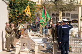 La ceremonia se celebró frente a cada una de las sepulturas de la Compañía de Mar, Grupo de Intendencia y de Sanidad cuyos restos mortales, parte del legado histórico de la Unidad Logística 24, descansan en este camposanto.