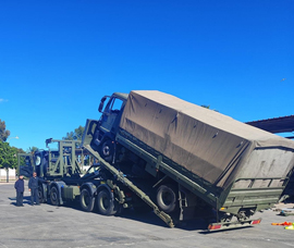 Durante la jornada de instrucción, además de reforzar los procedimientos de seguridad, se ha capacitado al personal de la unidad en las operaciones de amarre para el transporte teniendo en cuenta las fichas de carga existentes y el empleo de distintos materiales de sujeción a la plataforma como eslingas y cadenas.