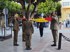 El arriado de Bandera tuvo lugar junto al monumento a los héroes de Taxdirt, en la plaza Pedro Segura con los acordes del Himno de España para posteriormente ser plegada y entregada a la presidenta de la Asociación TEAMA, en un gesto que subraya el estrecho vínculo entre las Fuerzas Armadas y la sociedad civil y en particular a la valiosa labor que realiza esta asociación en Melilla con las personas con Trastorno del Espectro Autista y sus familias.