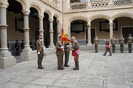 Tras la intervención del general, los componentes de la 264 promoción, así́ como una amplia representación de los familiares que han acudido, han saludado al estandarte de la Academia de Artillería.