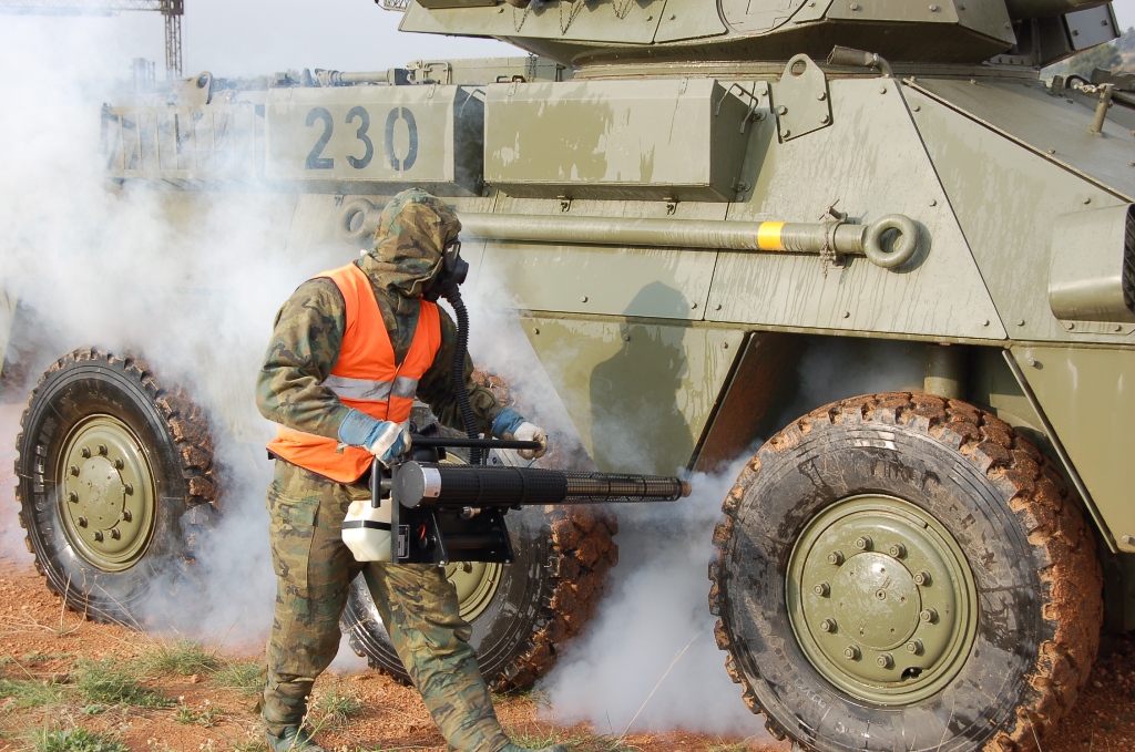 Vehículo pesado y presurizado para el  reconocimiento de áreas contaminadas,  esta equipado con aparatos de detección química, radiológica y biológica.