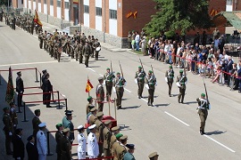 Concluido el desplazamiento y el acto de juramento individual ante la Bandera, y una vez finalizada la emotiva alocución del coronel Escalante, tuvo lugar el tradicional acto de homenaje a los que dieron su vida por España, finalizando el evento con un marcial y vistoso desfile a pie de las unidades participantes en la parada militar.