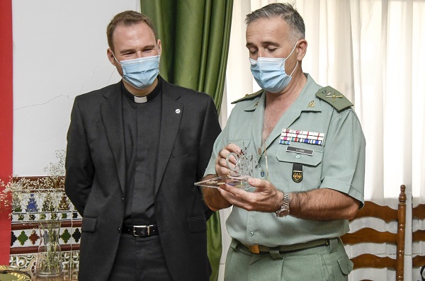 El Pater José María Sánchez García entrega y dona a La Legión un cuadro de S. M. el Rey Felipe VI