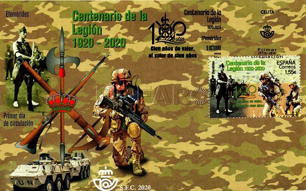El sello emitido correspondiente al Centenario de la creación de La Legión consigue plasmar la tradición y modernidad de esta Unidad plasmando en la imagen un gastador de La Legión de tiempos pasados, con la de unos legionarios de hoy dotados del más moderno equipamiento de combate, pero ambos con el mismo espíritu y entrega enraizado en su Credo Legionario. Desde la Comandancia General de Ceuta han explicado: "Es de reconocer y agradecer un año más la generosidad de la Sociedad Estatal de Correos y Telégrafos y de la Fábrica Nacional de Moneda y Timbre por su contribución a la celebración de esta importante efeméride para La Legión y para el Ejército de Tierra".