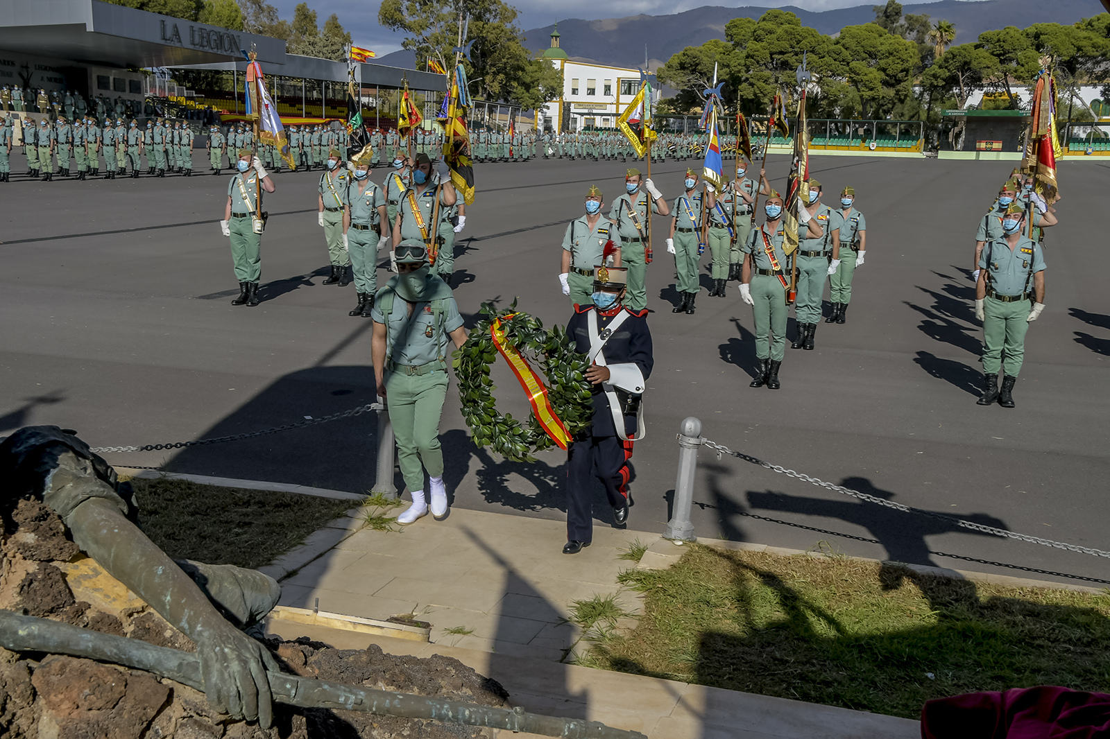 La Base “Álvarez de Sotomayor” ha acogido este viernes una parada militar con motivo de la celebración del día de Santa Bárbara, Patrona del Arma de Artillería y de las Especialidades fundamentales de Armamento, Mecánica y Química del Cuerpo de Ingenieros Politécnicos del Ejército de Tierra. El antiguo jefe del Grupo de Artillería de La Legión y actual jefe del Mando Apoyo Logístico del Ejército de Tierra, teniente general Ramón Pardo de Santayana y Gómez-Olea, ha presidido la parada militar.