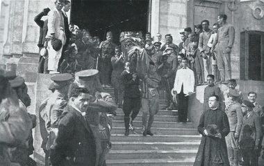 Seguía la presidencia del duelo, formada; por el Alto Comisario, Sr. Silvela; Comandante General de Melilla, Martínez Anido; generales Echagüe y Castro Girona; comandante del "Reina Regente", García Velázquez...