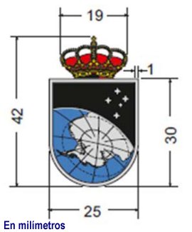 El emblema es un distintivo metálico con forma de escudo español (cuadrilongo de punta redonda), con la siguiente descripción heráldica: en campo de sable (negro), continente antártico de plata sobre la zona austral del globo terráqueo de azur (azul), perfilado de plata. En cantón siniestro del jefe, cinco estrellas de plata de la constelación Cruz del Sur. Escudo fileteado de plata y timbrado de corona real.