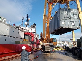 El XXXIX Contingente Antártico del Ejército de Tierra realiza la carga de los Buques Oceanográficos de Investigación en Cartagena