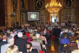 Estaba previsto celebrarlo en el claustro del Palacio, pero las copiosas e insistentes lluvias de ese día obligaron a cambiar el escenario al Salón del Trono, que se vio abarrotado por el numeroso público asistente.