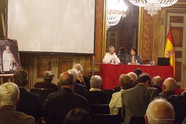 María Pilar Saura Pérez, doctora en Ciencias de la Información, ha investigado durante más de tres años sobre las encomiendas de Fray Juan de Molina, sus redenciones de cautivos y sus prodigios. Su vida ha quedado recogida en el libro «Fray Juan de Molina y Entrena, venerable mercedario (1579-1652). Camino de santidad», que brillantemente resumió en una conferencia pronunciada en el Salón del Trono del Palacio de Capitanía, escenario elegido por ser el primer convento de la Orden de la Merced, y cuya historia fue presentada con anterioridad por el teniente coronel Miguel Ángel Campanero, actual gobernador del Palacio de Capitanía o Palacio de la Merced.