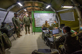 El general Amador Enseñat, Jefe de Estado Mayor del Ejército (JEME) ha inspeccionado la preparación del contingente Libre Hidalgo (L/H) XXXVII durante el ejercicio de integración y evaluación (EINTEVAL) “CEDRO” que se lleva a cabo del 04 y 07 de abril en la base de Cerro Muriano. En el transcurso de su estancia asistió a diversos temas tácticos y presidió la reunión diaria de actualización.