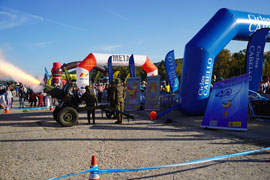 La carrera ha comenzado tras el corte de cinta inaugural que ha contado con la presencia del coronel jefe accidental de la Brigada 'Guzmán el Bueno' X, Manuel Navarro González acompañado por diferentes autoridades locales y representantes del ámbito deportivo. El estampido del obús 105/14 OTO Melara, del Grupo de Artillería X, ha marcado el inicio del paso por el arco de salida de los más de 1 500 corredores.