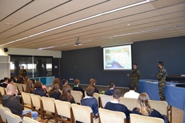 Durante el transcurso de la visita recibieron una breve exposición del Acuartelamiento, una conferencia sobre instrucción física en el Ejército y asistieron a una muestra de prendas de equipo de vestuario y campamento de dotación actual en el Ejército de Tierra.