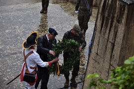 Tras la celebración de una santa misa en la capilla, para aquel personal que voluntariamente quiso asistir, tuvo lugar la parada militar en el patio de armas del acuartelamiento Jaime II que fue presidida por el coronel del regimiento `Palma´ 47 José María Laiz Ugidos, el cual pasó revista a la fuerza presente, incluidos los veteranos que formaron junto a una compañía del RINF “Palma” 47. El coronel en su alocución ensalzó a este personal retirado, que aguantó estoicamente bajo una intensa lluvia, que puso a prueba a todos los asistentes. El acto finalizó con un homenaje a los caídos por España y un desfile.