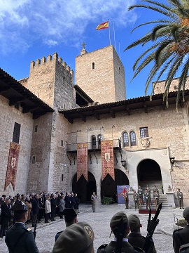 Acabado el acto en Menorca y tras un vuelo en helicóptero, de las Fuerzas Aeromóviles del Ejército de Tierra (FAMET), el Comandante General se desplazó al Palacio de la Almudaina en Palma, dónde junto con las autoridades principales del archipiélago se llevó a cabo el acto principal de la Pascua en Baleares. Ante una formación de los tres ejércitos y guardia civil, el general Gracia agradeció tanto del gobierno balear, como de las Fuerzas y Cuerpos de Seguridad del Estado, el continuo apoyo a la Fuerzas Armadas. Tras la alocución tubo lugar un desfile frente a la fachada del Palacio de la Almudaina, durante el cual las unidades participantes estuvieron arropadas por una multitud de público.