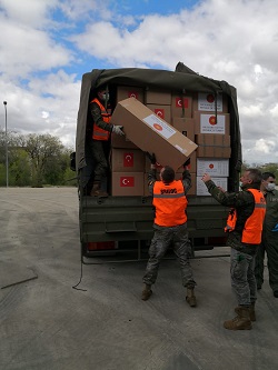 Dentro de las misiones extraordinarias a realizar con motivo de la "Operación Balmis", el Grupo de Apoyo a la Proyección de la AGTP1 recibe en la base aérea de Torrejón de Ardoz (Madrid) un avión A-400 procedente de la república de Turquía con diverso material sanitario (mascarillas, EPI,s, máscaras protectoras de rostro y fluido bacteriano). Se procede a su descarga por parte del personal del Ejército del Aire y se carga en camiones eurocargo para su transporte al PCAMI desde donde se organizará para su posterior distribución.