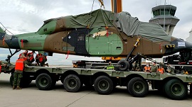 El transporte de este helicóptero se ha realizado por primera vez con motivo de la evacuación desde Eslovenia para su reparación por parte de los órganos logísticos correspondientes. Ha supuesto un reto para la Oficina de Cargas de esta unidad, encargada de elaborar las fichas de carga, del Centro de Control de Movimiento y del Grupo de Transporte Especial I/1.