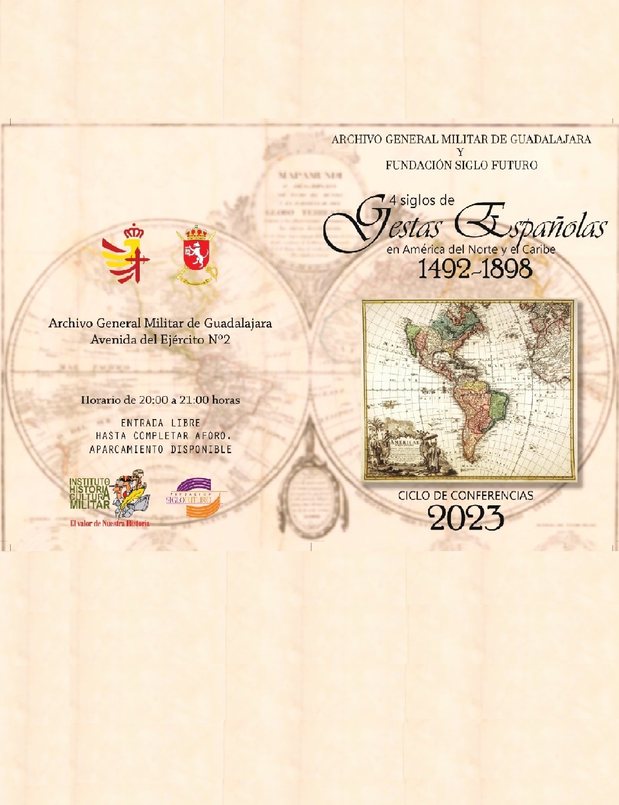 Finalizando las actividades de Difusión Cultural organizadas por este Centro, que desarrollan la Efeméride principal marcada por el Ejército de Tierra para este año 2023, el Archivo General Militar de Guadalajara en colaboración con la Fundación Siglo Futuro, organiza la cuarta y última conferencia titulada "Cuba y Puerto Rico: Últimos territorios españoles en el Caribe" que tendrá lugar el día 15 de junio a las 20:00 h. en el Salón de Actos del Archivo General Militar de Guadalajara, enmarcada en el primer Ciclo de Conferencias de Historia Militar "4 siglos de Gestas Españolas en América del Norte y el Caribe, 1492-1898”.