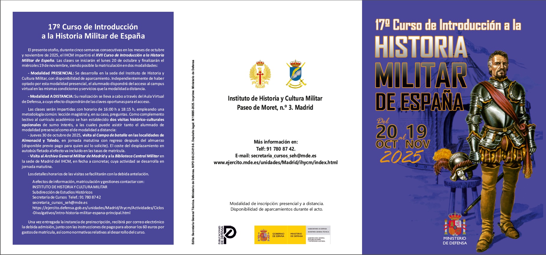 El curso, con el que se pretende que el alumnado a su finalización posea una visión general de la Historia Militar de España se impartirá en 15 jornadas, entre el 20 de octubre y el 19 de noviembre, de lunes a miércoles, con dos sesiones diarias, de cuatro a seis de la tarde.
