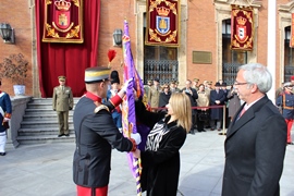 El Relevo estuvo presidido por el Excmo. Sr. General de División D. Enrique Vidal de Loño, Director del Instituto de Historia y Cultura Militar. Hizo entrega de la reproducción de la Bandera Coronela el Presidente de la Asociación Retógenes “Amigos de la Historia Militar” D. Eduardo Robles Esteban, actuando como madrina de tan relevante acto Dña. Carolina Dolado Esteban.