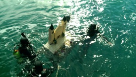 Una vez bendecido el Belén, los buceadores procedieron a depositarlo en una oquedad submarina. Para la realización de este ejercicio subacuático se ha contado con la colaboración de los submarinistas componentes del Equipo GEAS de la Guardia Civil.