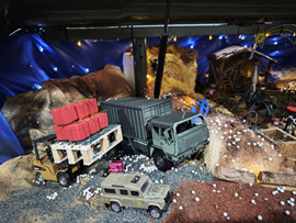 La Compañía Técnica de Mantenimiento de la ULOG 24 ha presentado un original y creativo belén navideño elaborado íntegramente con materiales reciclados que, de manera habitual, se emplean en los trabajos del taller. Tornillos, cables, piezas metálicas y otros elementos han sido transformados en figuras y escenarios que componen esta representación navideña tan especial.