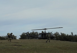 Por otra parte la segunda Sección realizó un tema independiente, el cual consistió en una inserción y una extracción helitransportada. Esta sección inició el ejercicio acogiéndose a una COP y balizando una HLZ. A tal efecto, acudieron hasta la ermita de Santa Ana dos helicópteros con base en Agoncillo (La Rioja). Uno de ellos era un UH-1H, famoso tanto por su empleo en la Guerra de Vietnam, donde participaron 7013 unidades de este modelo, siendo destruidas 3305, como por su aparición en la magistral escena de Apocalypse Now, de Coppola, con “La Cabalgata de las Valquirias” de Wagner sonando como música de fondo. No en vano se trata de uno de los helicópteros con más éxito de la historia, con más de 16.000 unidades vendidas. En concreto, el “UH-Hotel” fue producido en mayor cantidad que cualquier otro modelo de la serie.