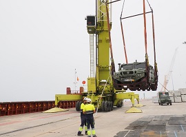 Un total de 20 vehículos de ruedas en sus diferentes versiones, 4 piezas de artillería remolcada y 10 contenedores de carga embarcaron el 20 de agosto en el puerto de Vigo con dirección al puerto de Izmir, Turquía. Desde este puerto, todo el material se desplazó hasta el área de entrenamiento de Acikir en la localidad de Polatli, a las afueras de Ankara.