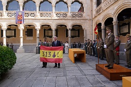 Los alféreces alumnos de la 313 promoción de la escala de oficiales que han finalizado con aprovechamiento sus estudios en este centro, recogieron los certificados de fin de curso, así como sus títulos de ‘Segoviano Honorario’ de manos del alcalde de Segovia, José Mazarías y de otros miembros de la corporación municipal.