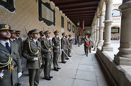 A continuación, fue el coronel director de la Academia de Artillería quién se dirigió a los componentes de la promoción haciendo un repaso de las vicisitudes que han afrontado: transformación de un modelo de tropa de reemplazo a otro plenamente profesional, la plena incorporación de España en la estructura militar de la OTAN y la adquisición de nuevas capacidades entre otras.