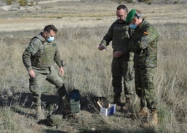 Durante estos días de voladuras, el Coronel Jefe de la Agrupación, Javier Alberto Núñez Escorial, así como el suboficial mayor Otero, se acercaron hasta la zona del campo habilitada para poder realizar estas destrucciones y así conocer de primera mano tanto los procedimientos como las especificaciones que le ha mostrado el jefe de la CIAMUN-613.