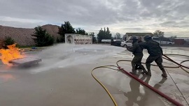 El día 20 de noviembre, en las instalaciones de la empresa “Castilla y León Formación Practica S.L”, ubicada en la localidad vallisoletana de Corcos del Valle, se han realizado las prácticas contraincendios necesarias para la obtención o renovación de la autorización para transportar mercancías peligrosas por carretera (TPC). Esta autorización se imparte en la Escuela de Conductores (EC-61) de la Agrupación de Apoyo Logístico núm 61 (AALOG61-BRILOG) según lo marcado en la Instrucción Técnica 09/23 “Formación de conductores del Ejército de Tierra”.