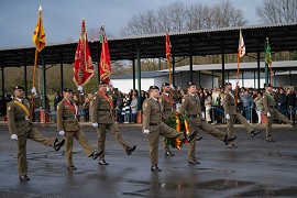 Por último, se ha interpretado el himno de Infantería dando paso al desfile de la fuerza, tras lo cual el coronel se ha dirigido a los presentes, familiares y amigos que se han sumado a la celebración, quienes también han participado activamente en este homenaje, reflejando el fuerte lazo de camaradería que une a la familia militar, y a los que ha agradecido su presencia, dando por concluida la ceremonia.