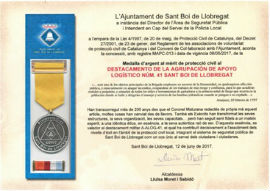 - La Unidad y Servicios de Talleres 412 de la AALOG 41 galardonada con la Medalla de Plata al Mérito de la Protección Civil de la ciudad de Sant Boi de Llobregat (Barcelona)