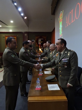 El acto de entrega de certificados y clausura del curso se desarrolló en el salón de actos de la Academia de Logística, presidido por el Director de la Academia (DIRACLOG), acompañado por el profesorado de la Jefatura de Estudios que ha impartido las clases y dirigido las prácticas durante el citado curso.